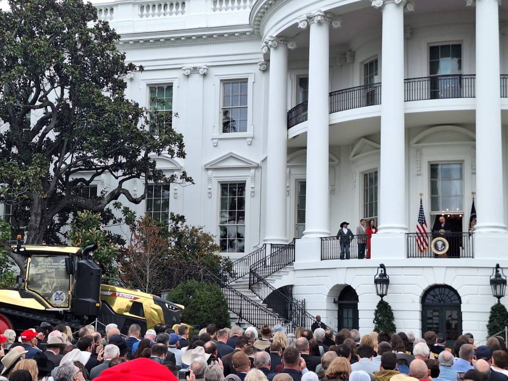 Sul prato sud della Casa Bianca, in occasione dell’evento, erano esposti tre trattori. Uno, in particolare, rivestito in una pellicola dorata e firmato da membri dell’amministrazione, ha funzionato come elemento simbolico dell’evento.